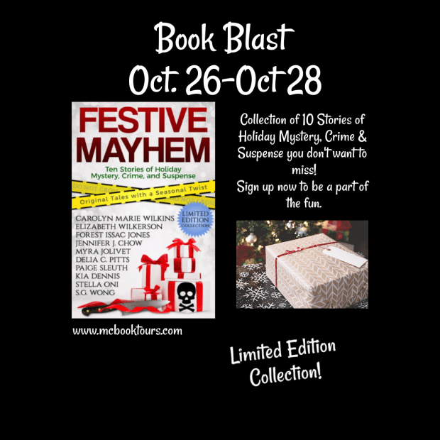 FESTIVE MAYHEM features a collection of never-before-published short stories authored by ten mystery, crime, and suspense writers of color: Carolyn Marie WilkinsS.G. WongElizabeth WilkersonStella OniKia DennisForest Issac JonesDelia C. PittsMyra JolivetJennifer J. Chow, and Paige Sleuth.